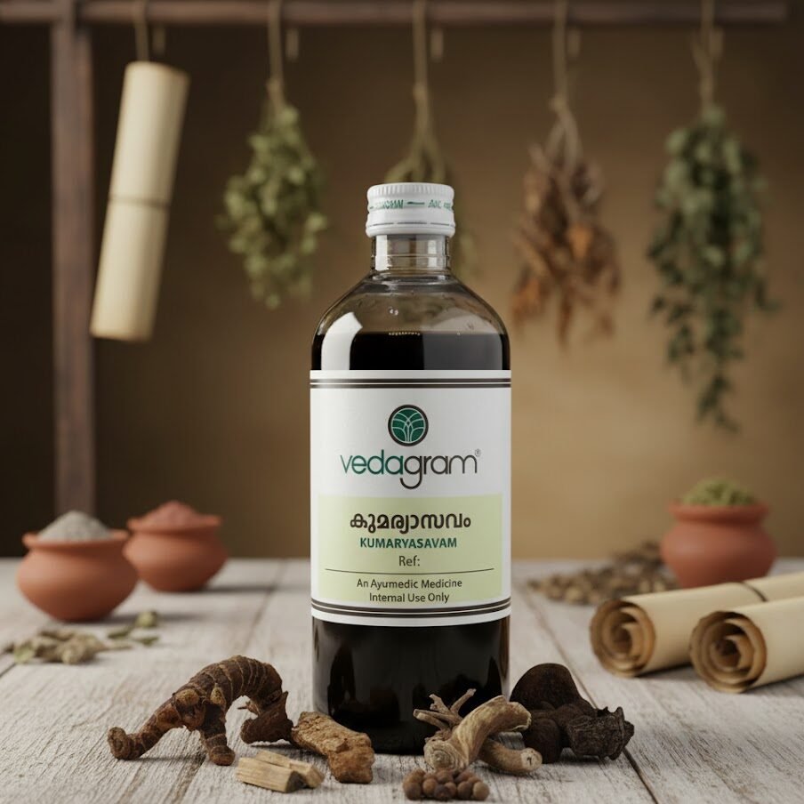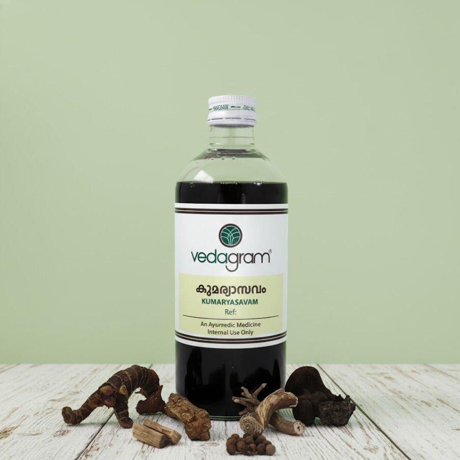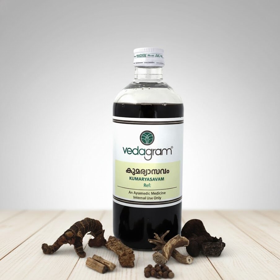 Kumaryasavam is a classical Ayurvedic tonic formulated to support women’s health and hormonal balance. It helps maintain menstrual health, supports thyroid function, aids in managing obesity, and promotes liver wellness.