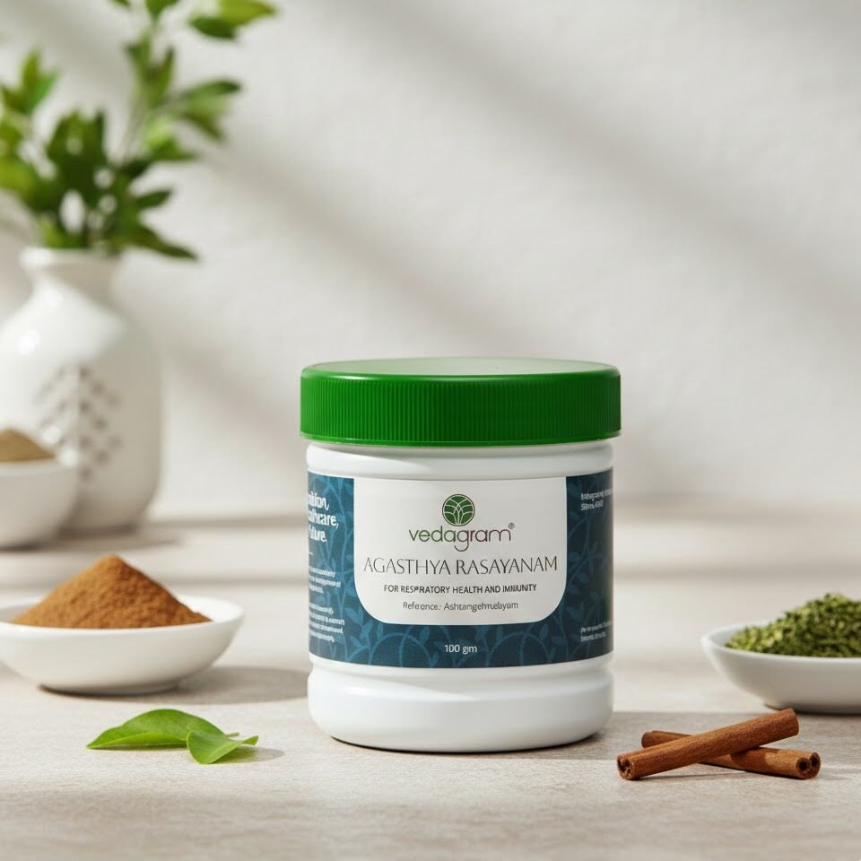 Agasthya Rasayanam is a traditional Ayurvedic preparation known for supporting respiratory health. Made with herbs like Dashamoola and Vasaka, it helps cleanse the respiratory tract, improve breathing comfort, and boost overall immunity.