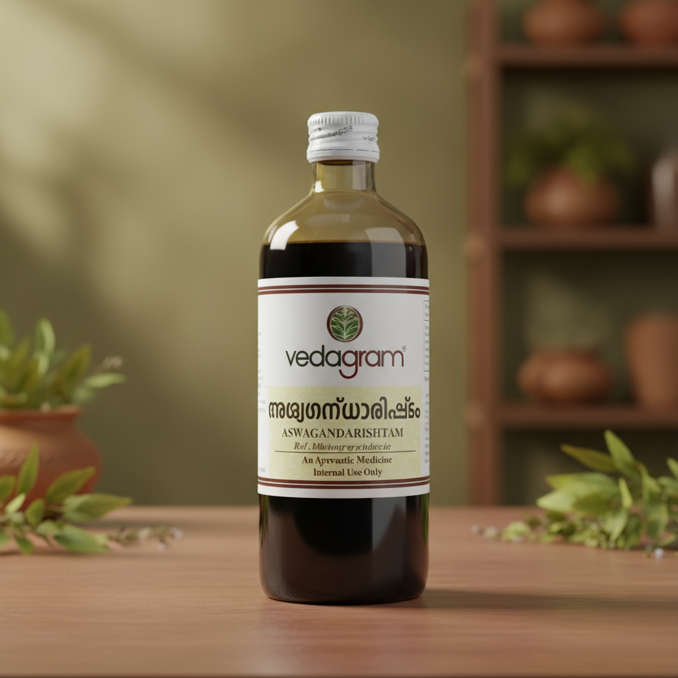 Aswagandharishtam is a classical Ayurvedic tonic known for improving strength, vitality, and overall energy levels. It helps reduce stress, supports better sleep, and enhances general wellness.